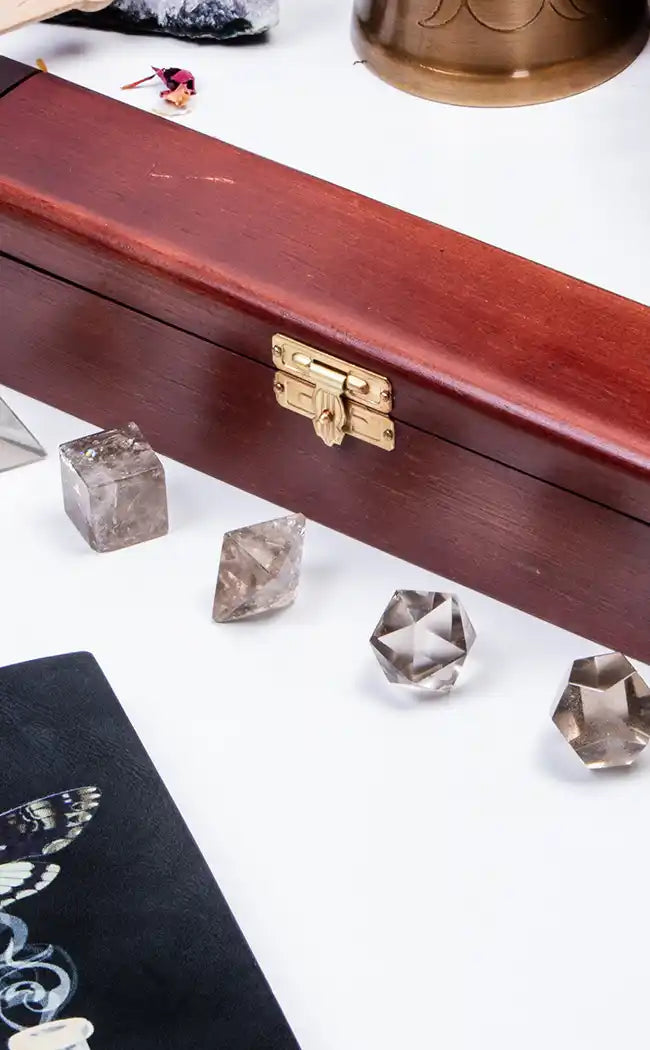 Each set comes with a box and 5 genuine smoky quartz crystals.