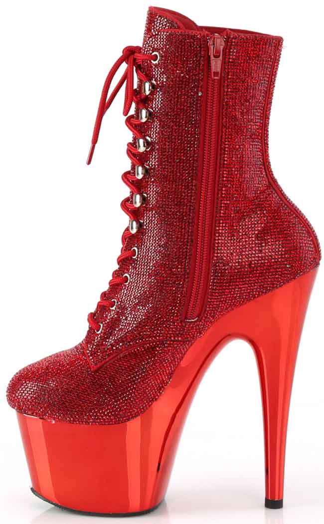 ADORE-1020CHRS Red Chrome & Rhinestone Boots