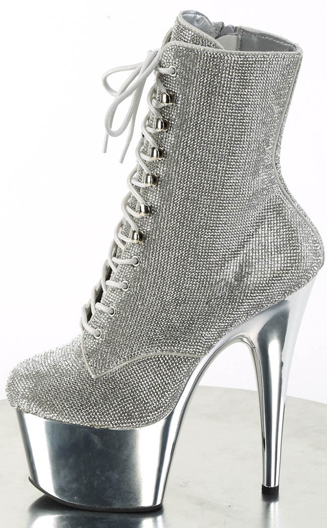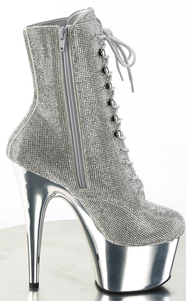 ADORE-1020CHRS Silver Rhinestone Chrome Boots
