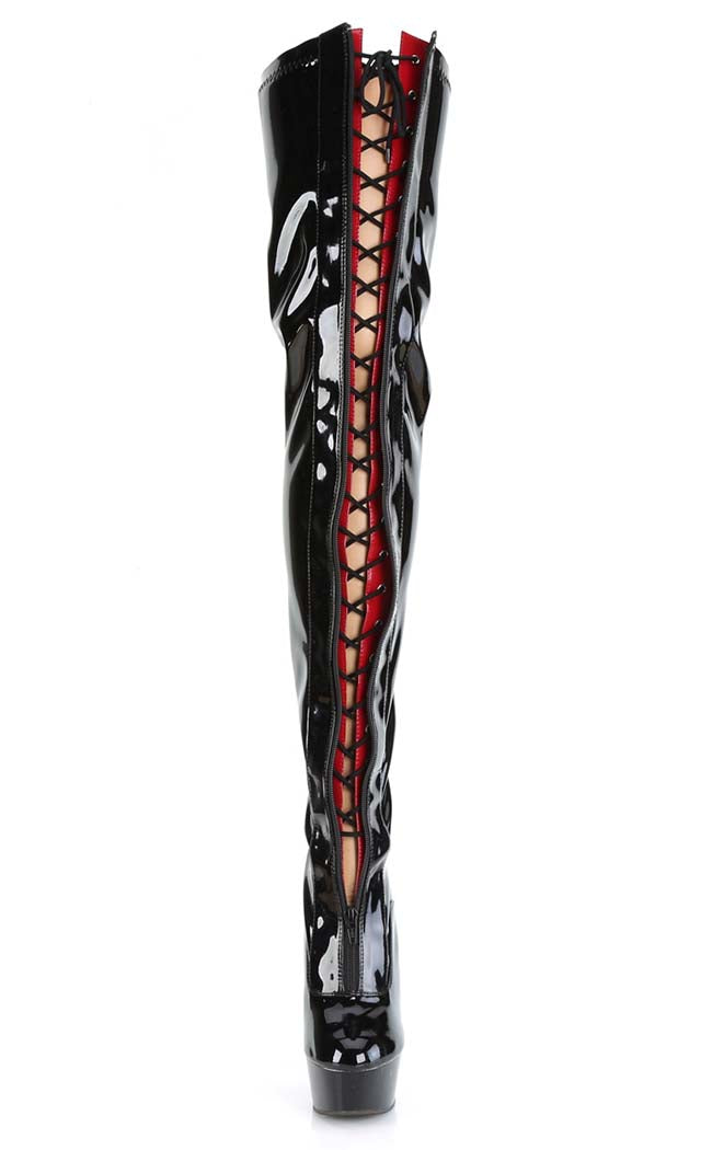DELIGHT-3027 Black & Red Patent Thigh High Boots