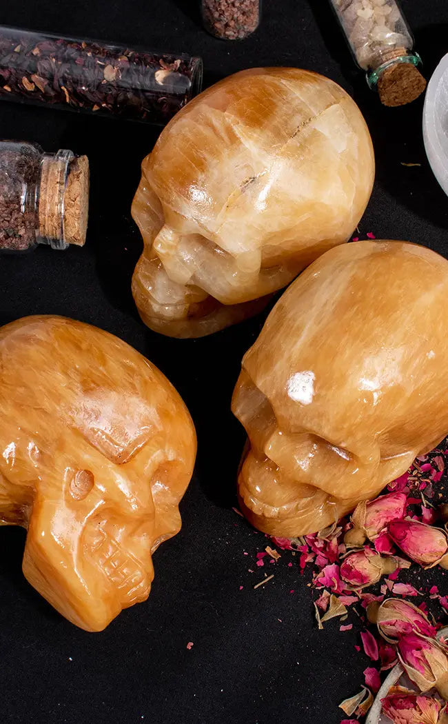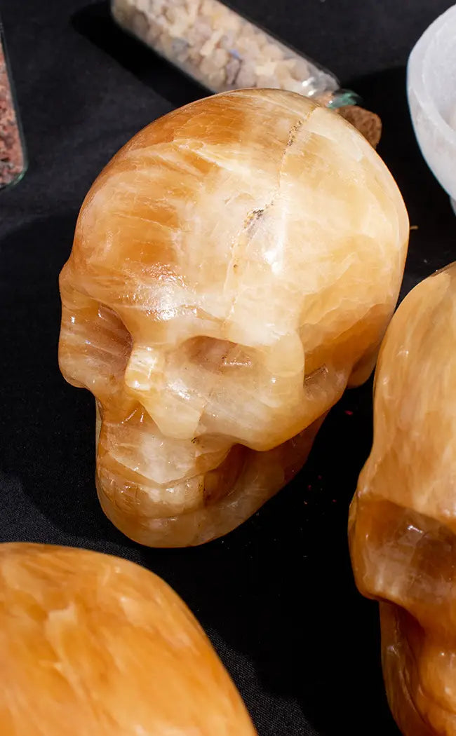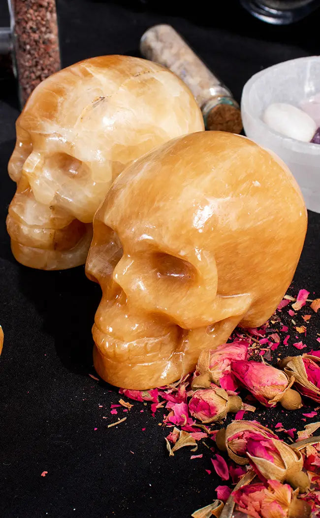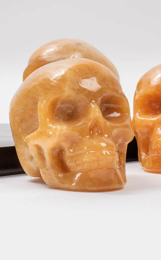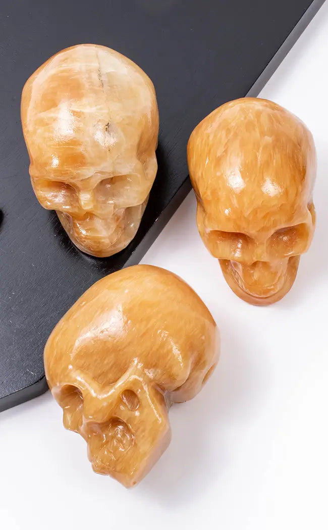These stunning crystal skulls feature varying shades of vibrant orange, really enhancing their already captivating appearance.