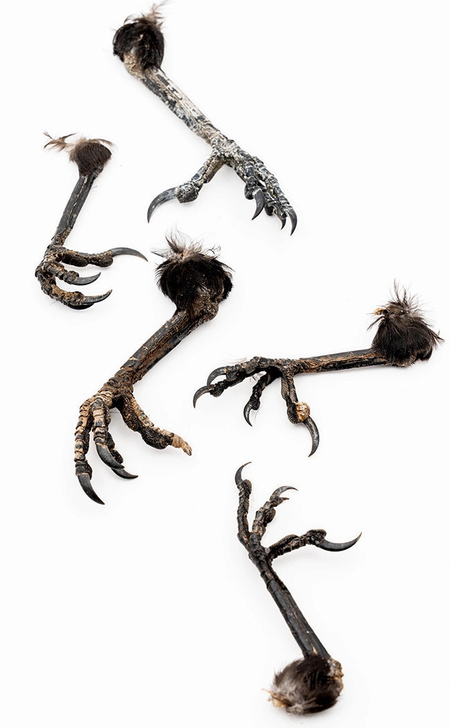 These feet have been collected and preserved for use as a beautifully unusual display item in jewellery, artwork, or taxidermy.