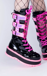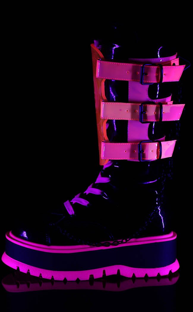 SLACKER-156 Black Patent & UV Pink Platform Boots