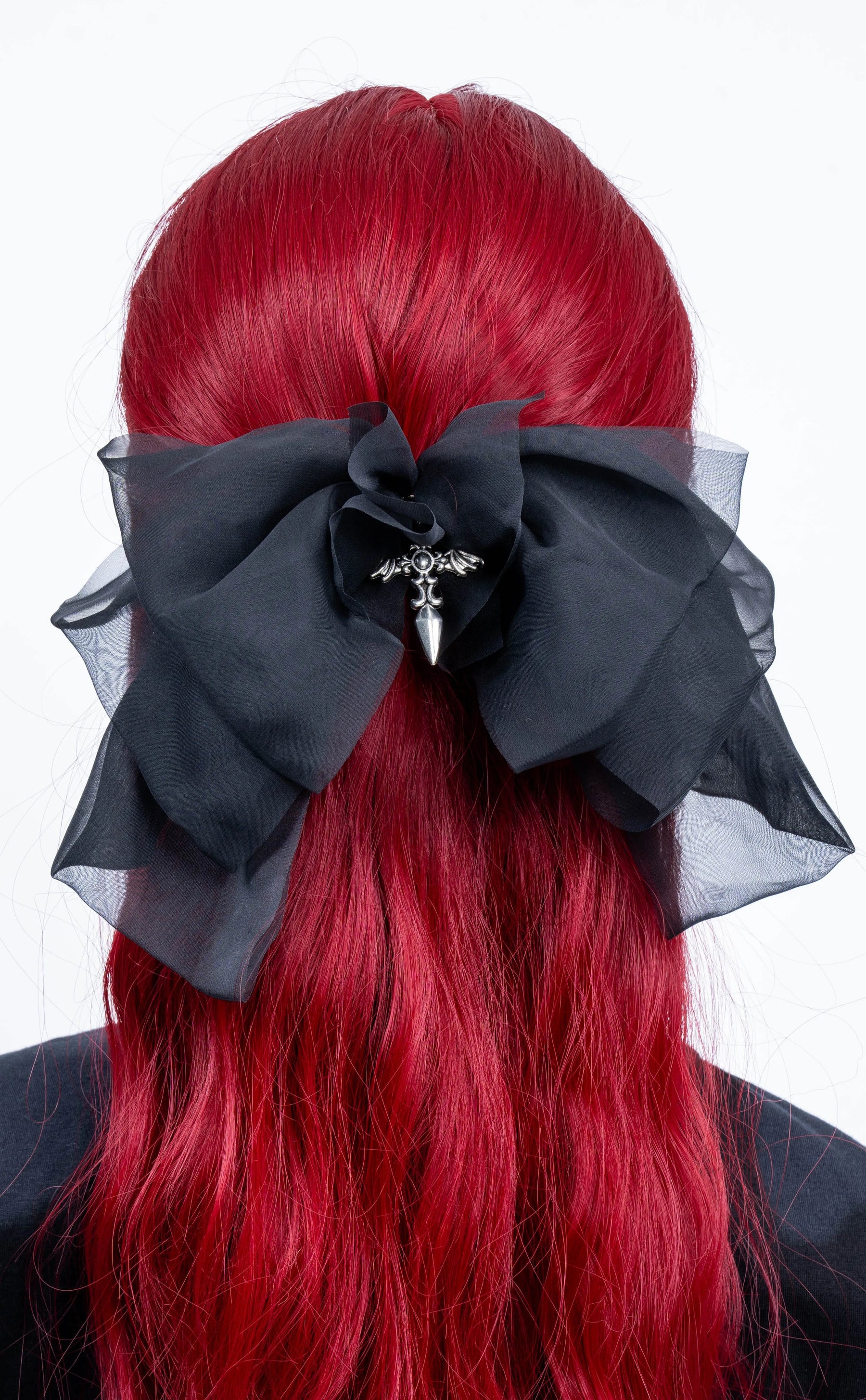 - Features: A Fluffy Chiffon Bow & Dangling Cross Charm.