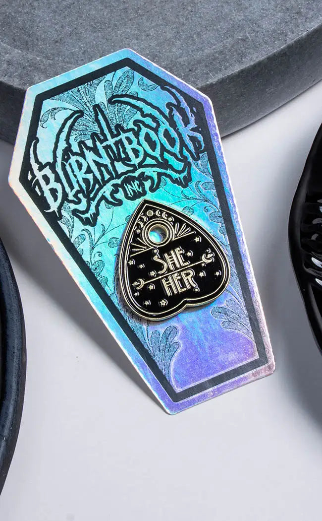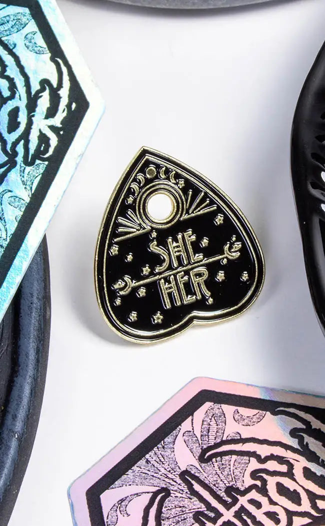 Our killer selection of pins, brooches and patches will spice up yer wardrobe in a snap! Enamel pins are a sweet accessory to add to pockets, collars, and bags-plus you can put ‘em on display on yer pinboard when yer not using them! Sew or iron on patches to add some metal flavour to yer denim vests n jeans or add ‘em to yer bag to fully customise all yer accessories! If yer feelin’ a little fancy, we also stock a delightful range of vintage-inspired brooches and antique style pins to add to yer collar or jackets for a touch of Victorian vibes. Check out our fave brands Killstar, Blackcraft Cult, Restyle and Cold Black Heart and find your fave new statement piece!