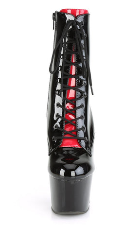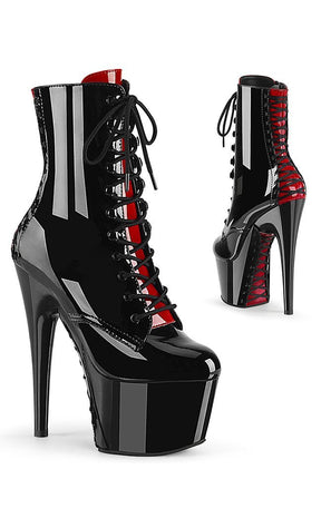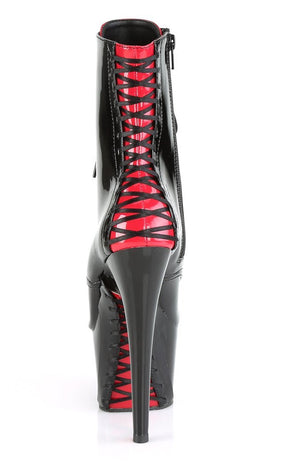 ADORE-1020FH Black Patent & Red Ankle Boots