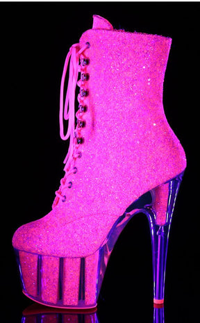 ADORE-1020G Neon Pink Glitter Ankle Boots
