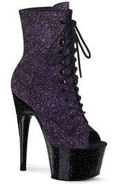ADORE-1021MG Purple Glitter Peeptoe Ankle Boots