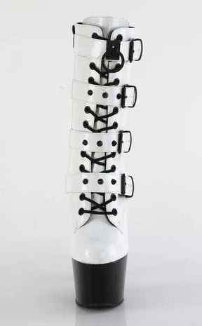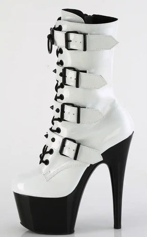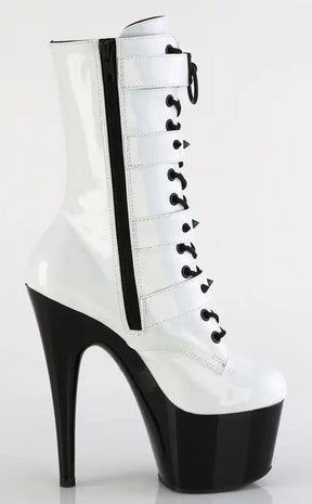 ADORE-1046TT White Holo & Black Patent Boots
