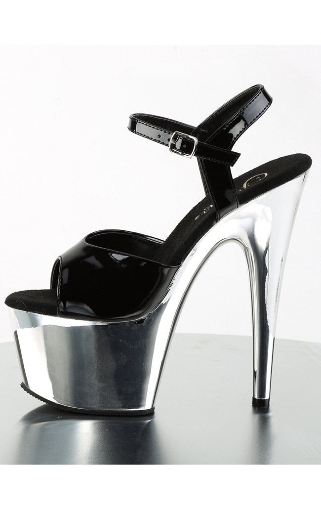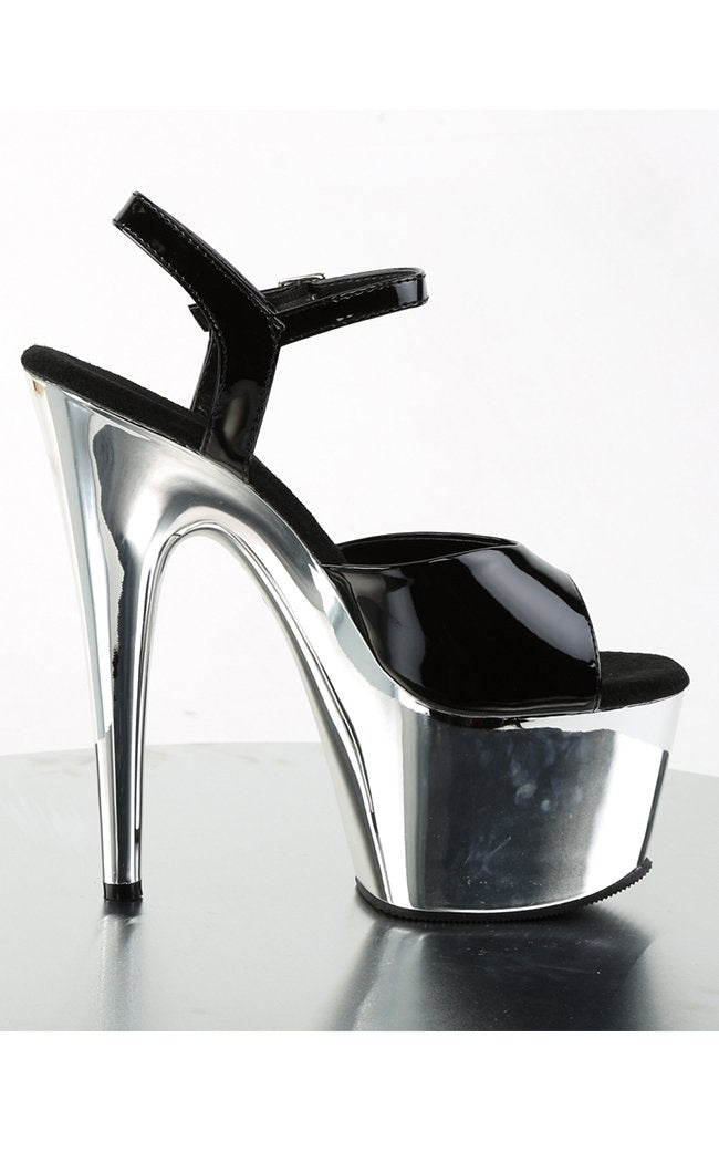 ADORE-709 Black Patent and Chrome Heels