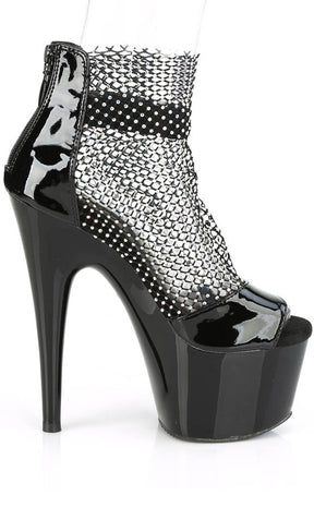ADORE-765RM Black Patent Rhinestone Mesh Heels