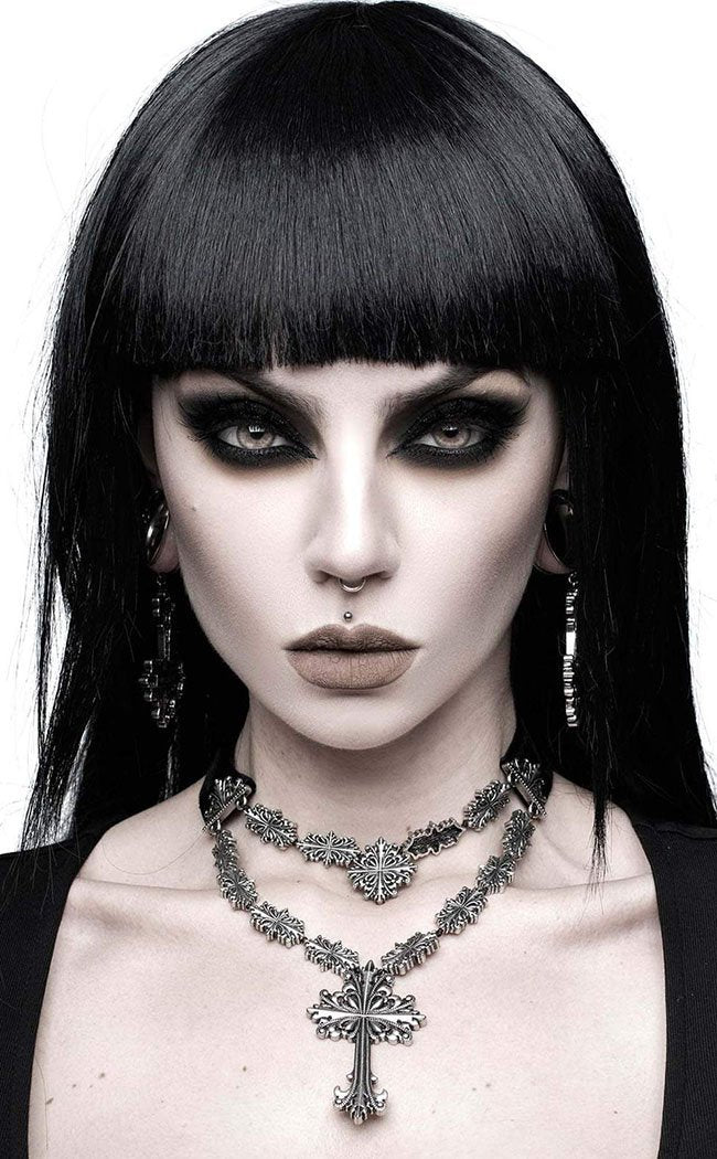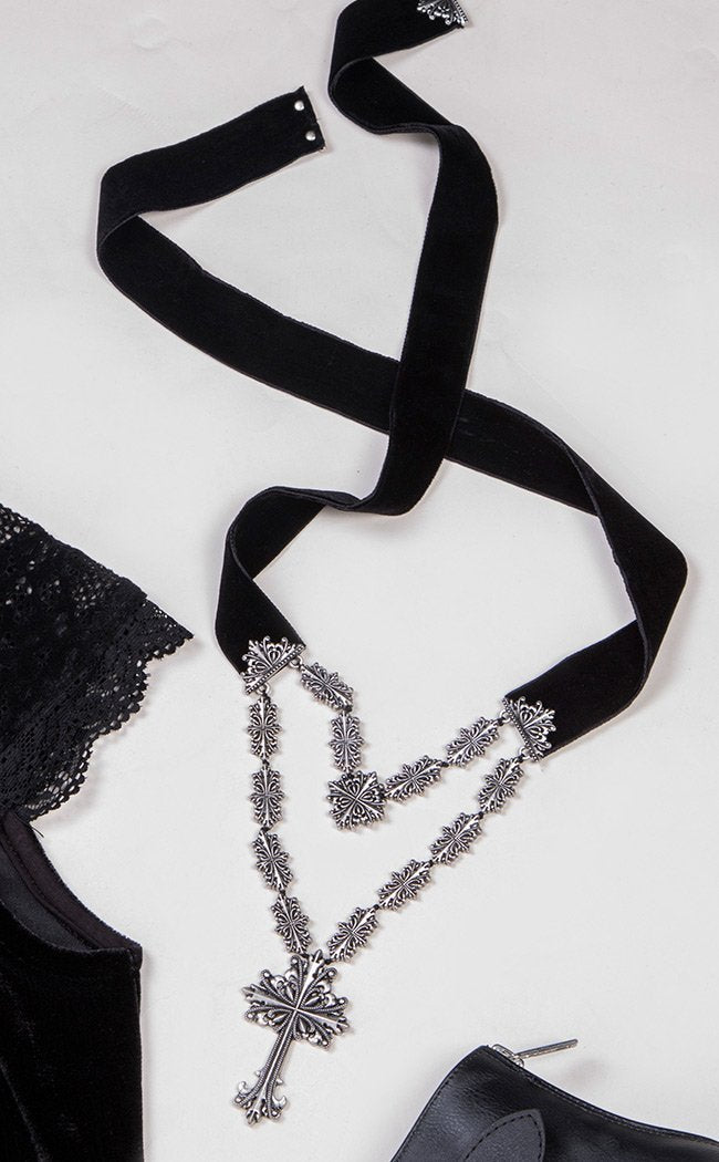 - Adjustable Back - Exceptional Quality - Size - 91cm/35.8" x 15cm/5.9* The perfect over-the-top necklace for ur looks. The 'Amdis' cross necklace features a lush velvet band and contrasting cross design and pendant. Large but lightweight for ur comfort. The perfect addition to your fave fits. Can be dressed up or down depending on your mood. 100% alloy metal.