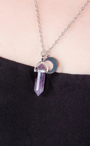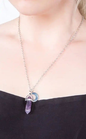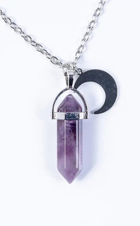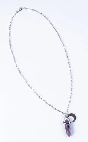 This necklace features an amethyst point and a moon charm on a 50cm long chain.