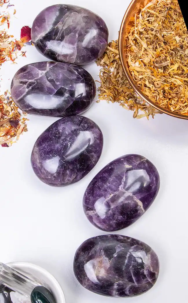Amethyst is a beautiful, peaceful healing stone. Known as the "change stone", Amethyst brings about change and helps to open gateways for spiritual transformation. It is also a stone of protection and is said to protect against black magic and evil. It is a stone of strength, calming, peace, healing, banishing, love, and dreaming.