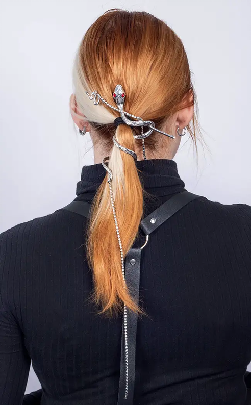 Crafted with exquisite detail, this windy snake hair stick with glowing red eyes and gems hanging down for added sparkle will have you feeling like a goddess. Ideal for holding even the toughest of locks, this hair stick will keep your hair in place with an extra flair.