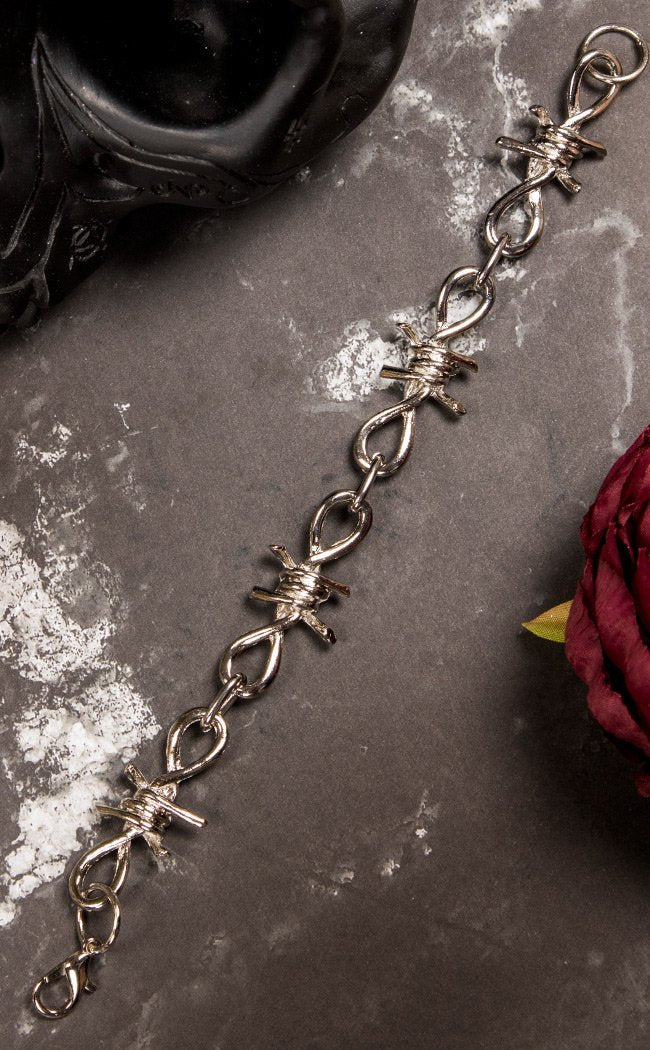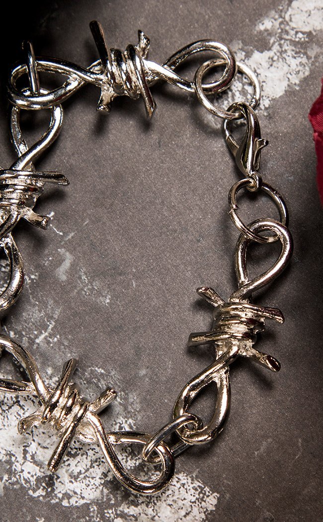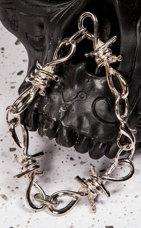 Cute lil silver barbed wire bracelet. About 22.5cm long.