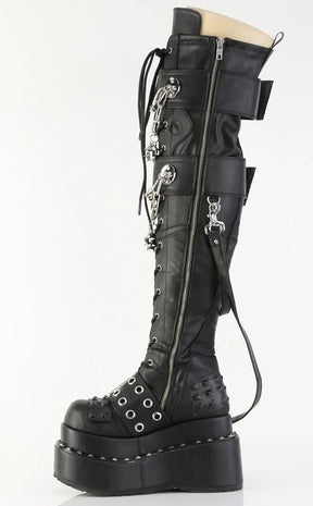 BEAR-316 Black Vegan Leather Thigh High Boots