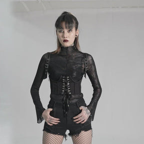 Assert your dominance in the Beatrice Waist Harness! This underbust harness is made from black stretch denim and features structured details, including adjustable laces at the front and back for the perfect fit. Slip in and out in a snap with a hidden side zip and feel like a badass in adjustable buckled shoulder straps.