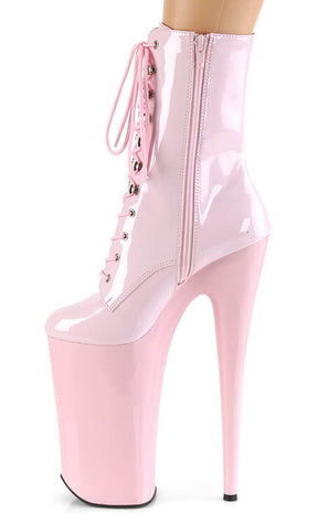 BEYOND-1020 Baby Pink Patent 10 Inch Ankle Boots