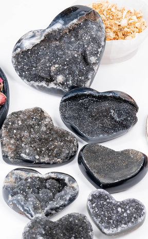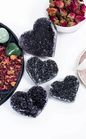 Black amethyst is a darker natural version of amethyst due to hematite & nickel inclusions and a higher iron content found inside its crystalline matrix. It works with the upper & lower chakras simultaneously giving a sense of equilibrium during times of deep healing and exploration. This type of Amethyst is rich in both colour and energy and is an awesome choice when you feel it’s time to transmute, transform and connect to your true Soul potential.