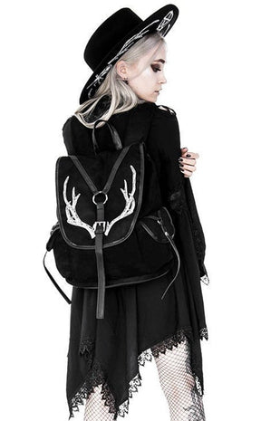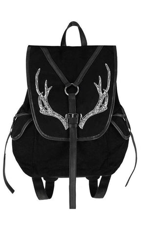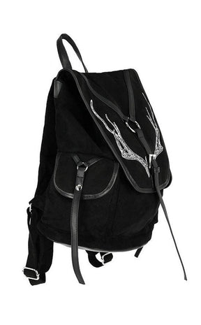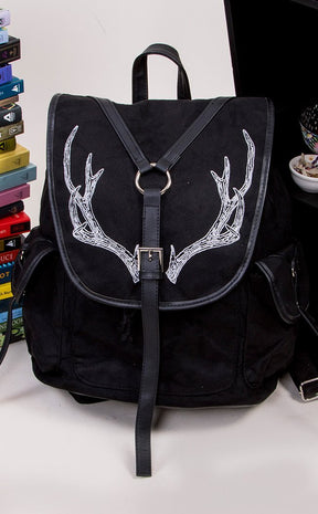 You can't journey into the unknown without a pack full of supplies! This beautiful backpack is perfect for school and travel: the main pocket is split into two compartments closes with a drawstring to ensure everything stays secure. The flap across it is decorated with an antler print as well as faux leather straps with silver-look hardware.