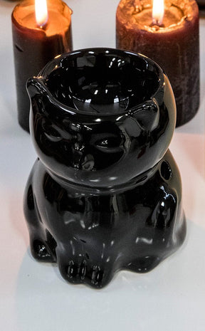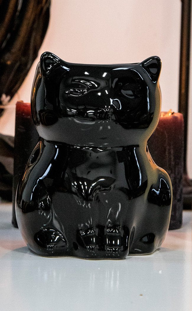 This kitty has space on its head for your favourite fragrance, melts and incense oils. Its back has an opening with space for a standard tealight: simply light a candle to create warm, glowing ambience for your favourite space..
