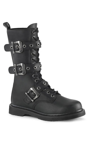 BOLT-330 Black Lace Up Mid Calf Boots