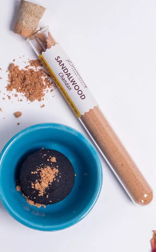 Gently fill a heat-resistant bowl or cauldron with sand, settle a lit charcoal disc at its centre, and carefully sprinkle some incense atop the well-lit ember. Avoid leaving the burning coal unattended at all times.
