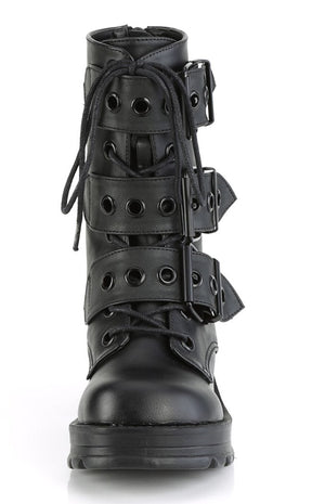BRATTY-118 Black Buckled Combat Ankle Boots