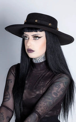 Drenched in commanding black, the Brimstone Boater adds an edgy twist to the classic boater hat. Its wide brim not only blocks those pesky rays but also gives you that elusive, shady allure you crave.