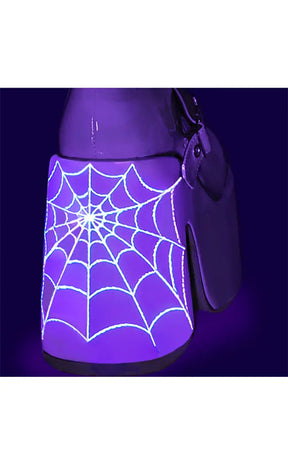 The lavender CAMEL-223s are a force to be reckoned with! Look like a total badass with these knee-highs decked out with spider web heart buckles.