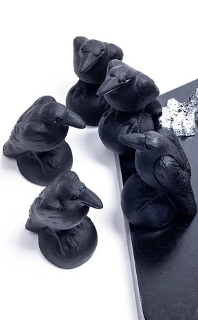 These ravens have been carved out of obsidian and are beautifully detailed representations. Each crow is about 65mm high and weighs approx. 80gms.