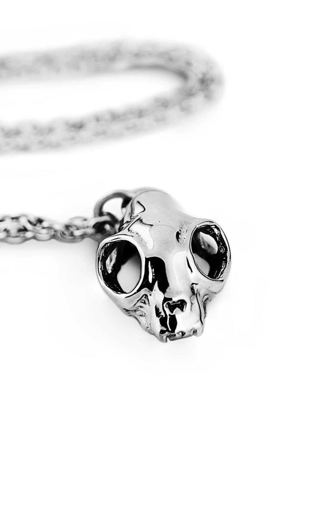 Add a little morbid glamour to your look with the Cat Skull Necklace! This unique piece features a 3D molded stainless steel pendant in the shape of a cat skull. Super wearable for laid back and formal outfits.