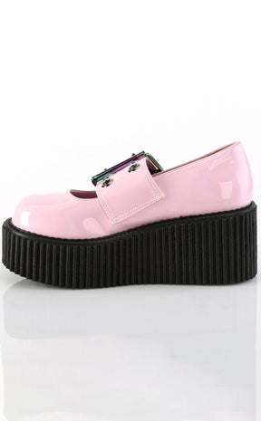 The CREEPER-230 flatforms are an edgy alternative to yer traditional Mary Janes with a wide eyelet strap and the trademark creeper sole for all-day comfy wear.