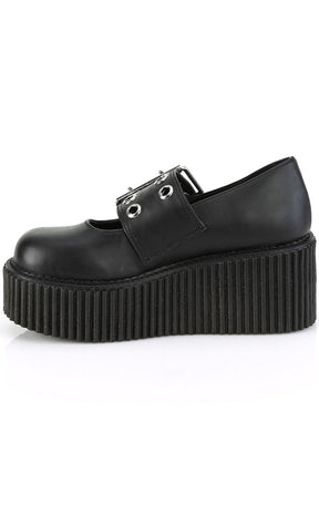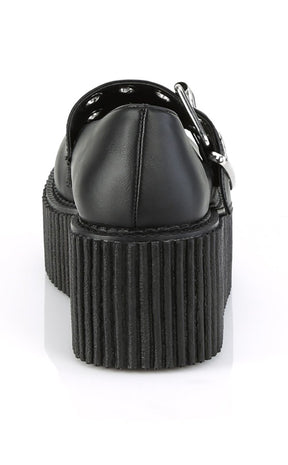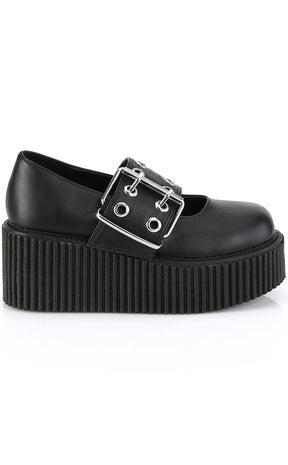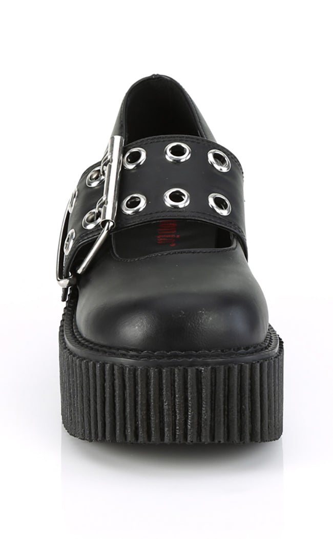 The CREEPER-230 flatforms are an edgy alternative to yer traditional Mary Janes with a wide eyelet strap and the trademark creeper sole for all-day comfy wear.
