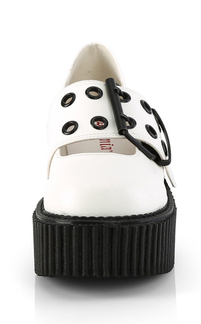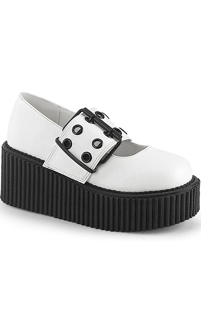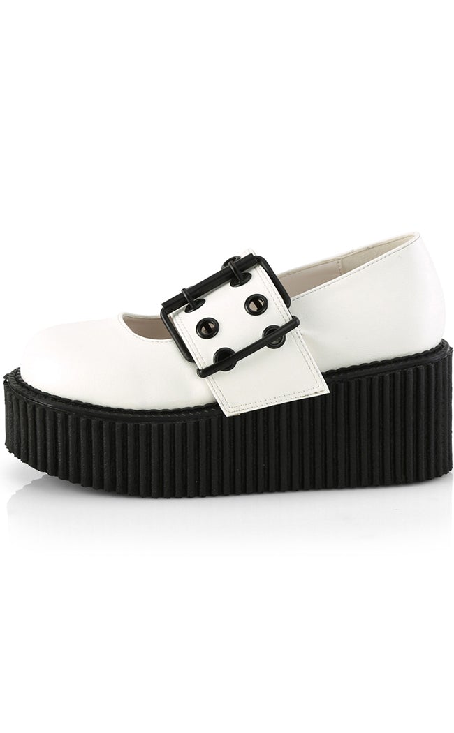 CREEPER-230 White Vegan Mary Janes