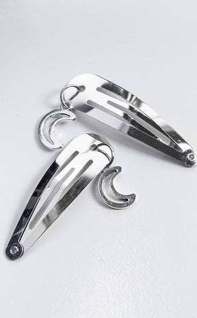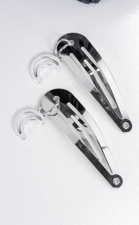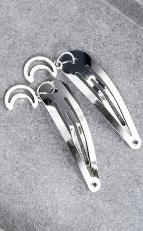 Lookin' cute under moonlight! These sweet clips feature dangling openwork crescent moon charms for a simple statement that'll instantly witchy up any hairdo.
