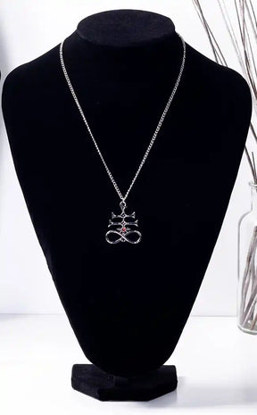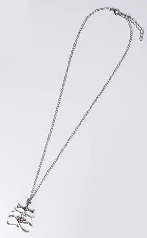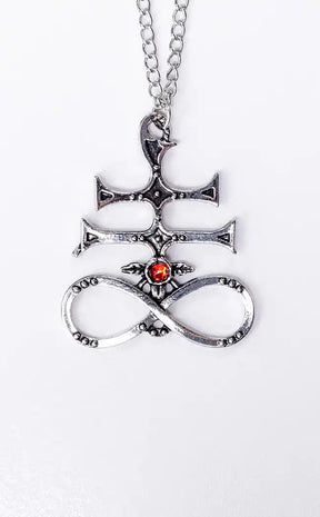 Cross of Leviathan sigil necklace with red gem at centre on a silver alloy chain.