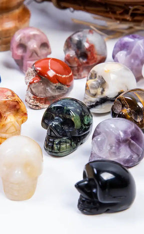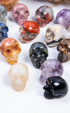 Crystal skulls are a fun way to add a little personality and goth up your crystal collection! Crystal skull carvings are said to be full of information and knowledge as they are keepers of ancient information. Some people think that crystal skulls can be used like crystal balls to see visions of the past, present and future.