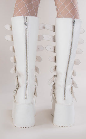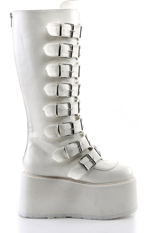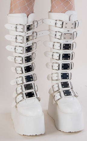 DAMNED-318 White Vegan Leather Boots (Au Stock)