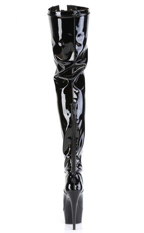 Light up the stage in the DELIGHT-3027 boots! These sexy thigh highs feature a two-toned patent upper and a front lace-up panel. A front and rear zip allow for easy on/off.