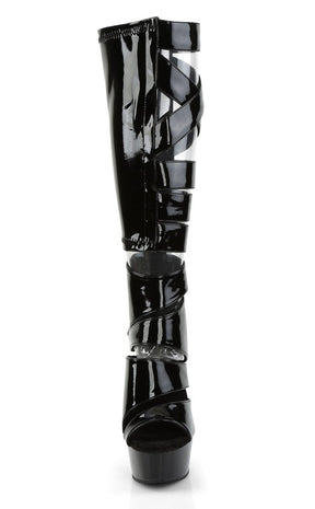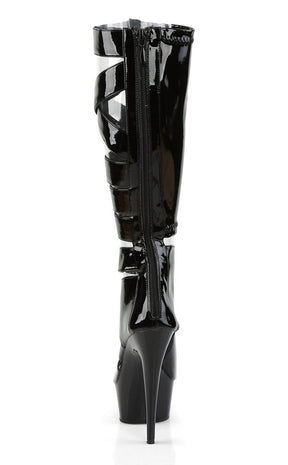 DELIGHT-600-49 Black Patent Strappy Knee High Boots