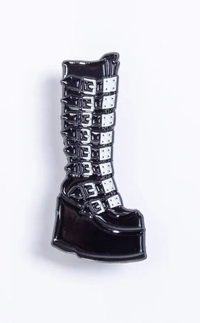 This 2.25" enamel pin showcases the signature edgy design of Demonia Swing-815 boots - a classic that stands out.