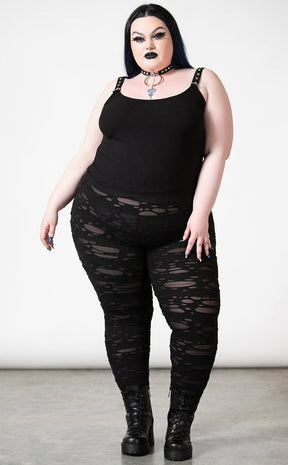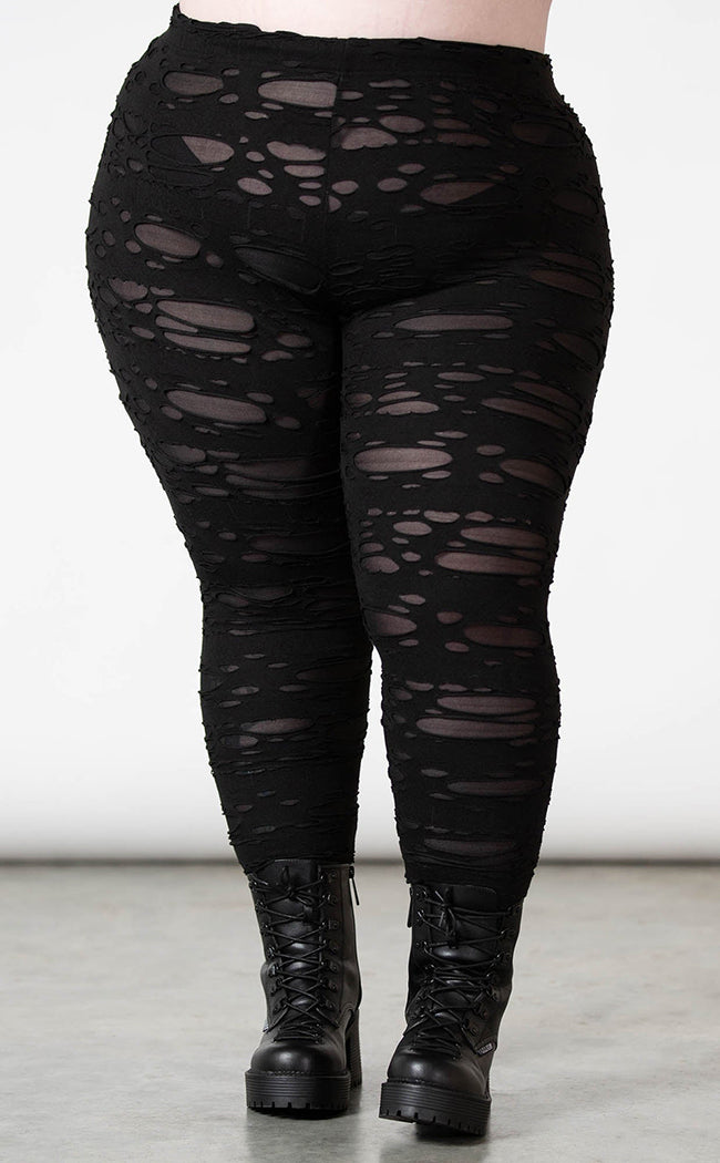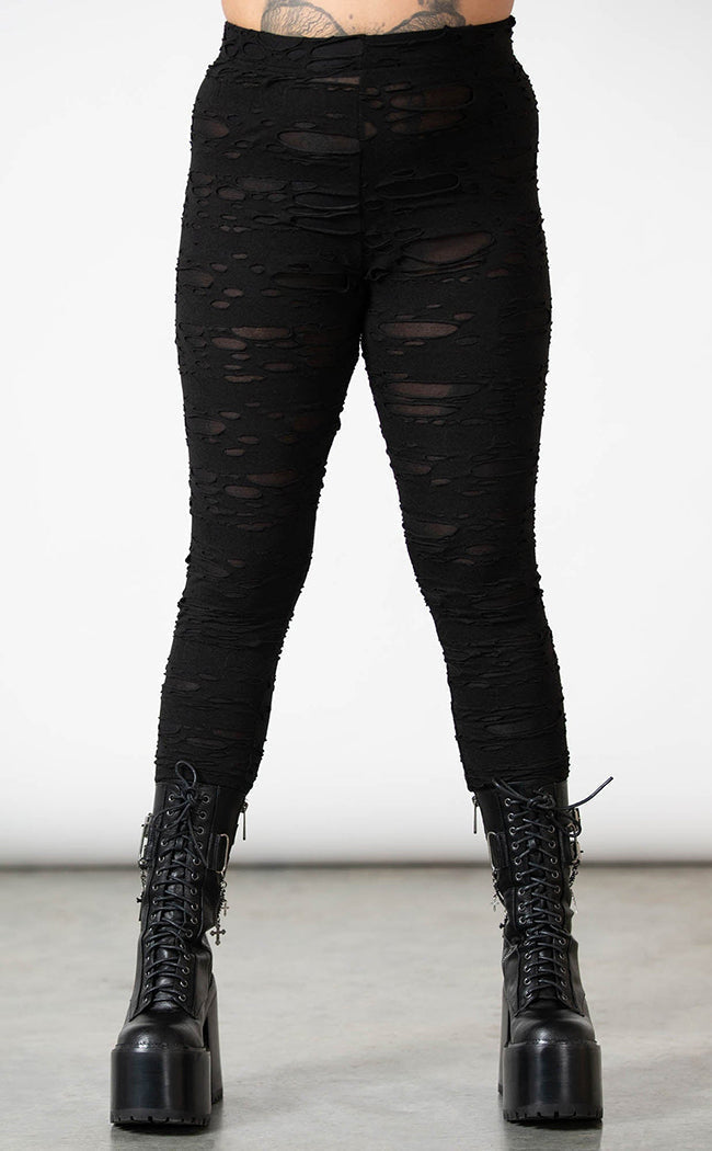 The Deserter Leggings are yer new fave styling staple! Soft, stretch fabric is shredded to hell and back, forming a slim fit and an elasticated waistband for a comfort fit.