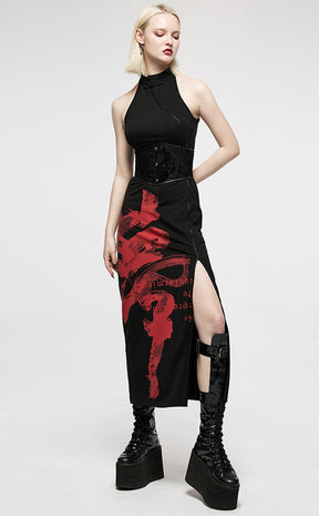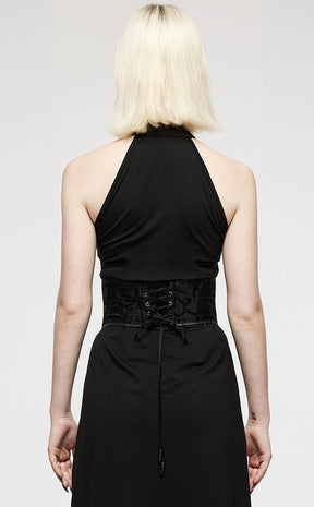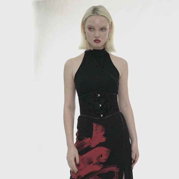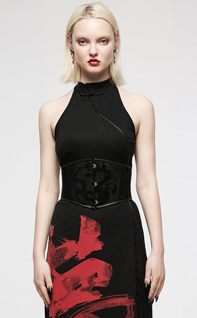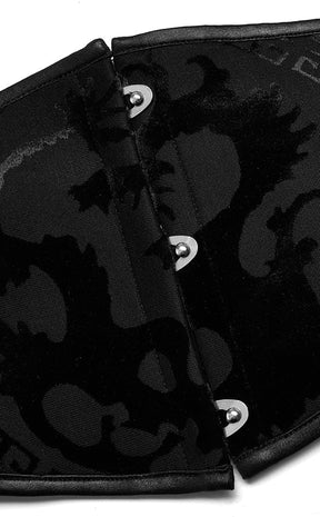 Accessorise with the mythical power of the Dragon Dance Cincher! This unique corset features a Chinese dragon pattern in embossed jacquard velvet, securing with a silver busk at the front. The cincher can be tightened with a ribbon tie at the back, great for tightlacing and flattering yer bod.