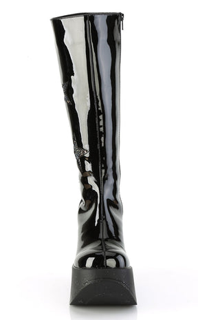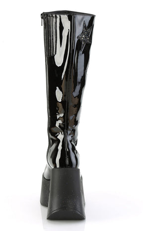 DYNAMITE-218 Black Patent/Glitter Knee Boots