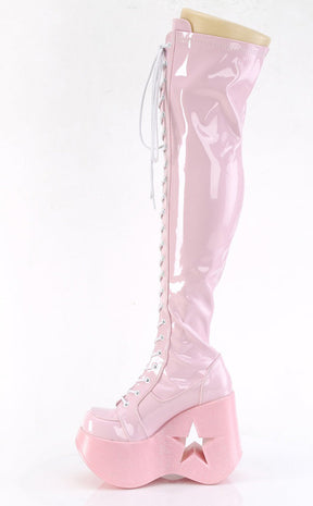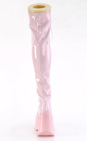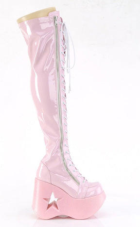 DYNAMITE-300 Baby Pink Patent Thigh High Boots