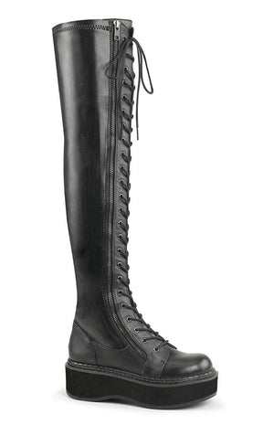 EMILY-375 Black Vegan Leather Thigh High Boots