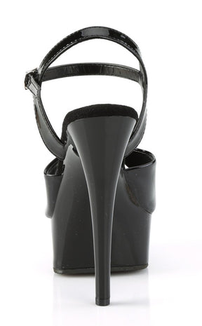 The EXCITE-609 heels feature a black patent upper and platform, an incredibly versatile style for performance and dance fitness.
