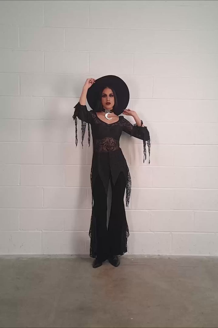 Pair with a flowing maxi skirt and pointed boots to complete the haunted witchy look!